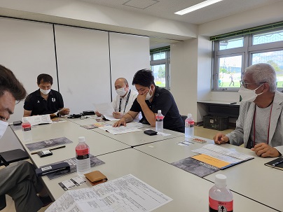 試合前に、いわてグルージャ盛岡 坂本社長・中村副社長・福田様と意見交換を行いました。