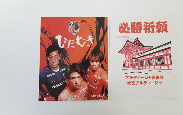 オリジナルカードの配布場所は、氷川神社楼門入口左側(アルディージャ後援会のぼり旗設置)となります。