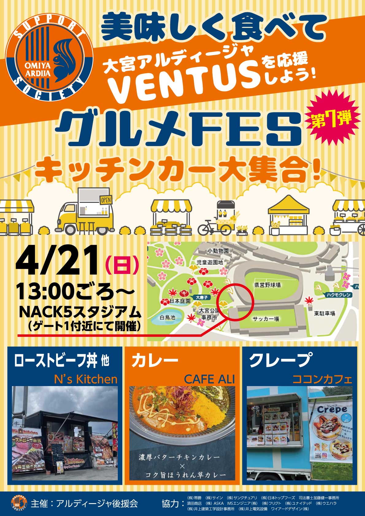 大宮アルディージャVENTUSホーム試合では、アルディージャ後援会主催のキッチンカーを開催しています。